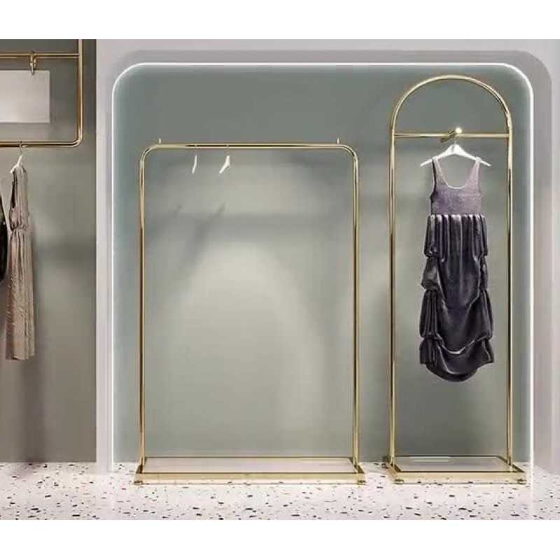 Стійка для одягу та суконь 1500×400×1700 мм у глянцевому золоті — ефектне рішення для магазину одягу, бутика, шоуруму або фотозони. Завдяки преміальному золотому глянцю стійка одразу привертає увагу, підкреслює стиль колекції та робить викладку “дорожчою” візуально. Ідеально підходить для демонстрації суконь, костюмів, верхнього одягу, піджаків, сорочок та капсульних підбірок.