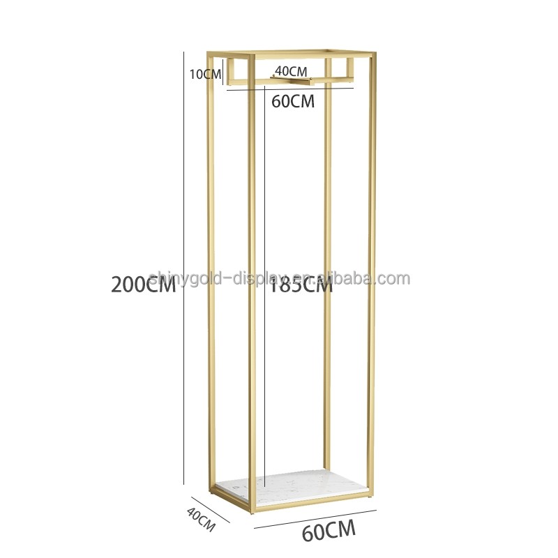 Стійка для весільних і вечірніх суконь 600×400×2200 мм — глянцеве золото, труба 30×30 мм