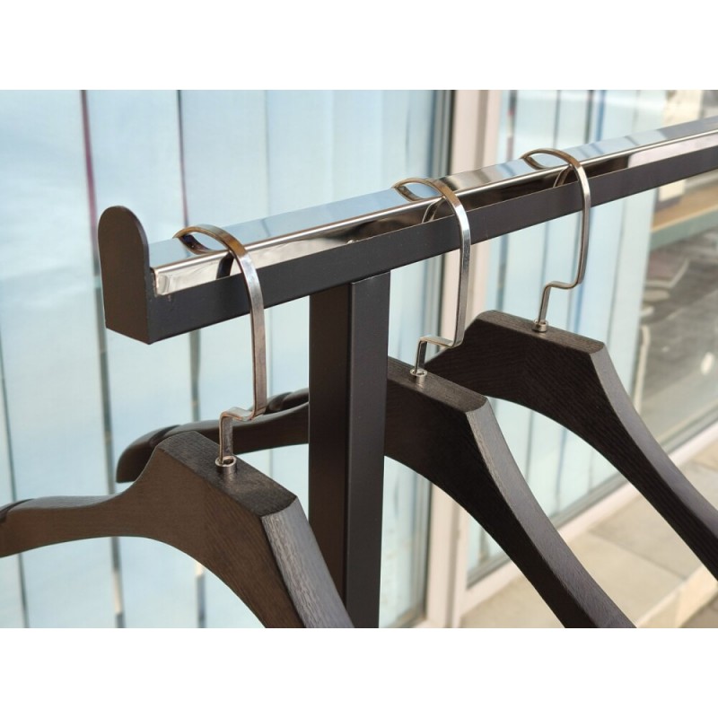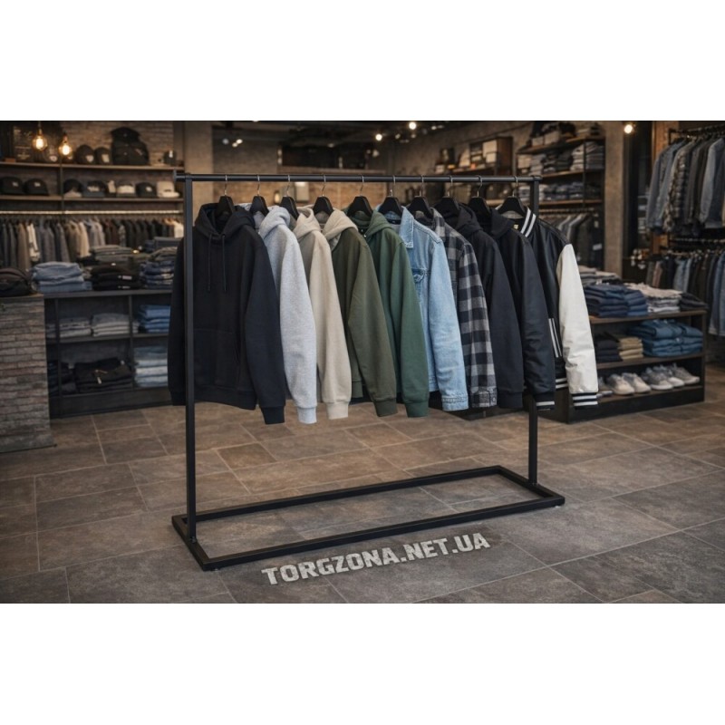 Завдяки оптимальним розмірам стійка дозволяє компактно розмістити одяг, забезпечуючи зручний доступ та акуратну презентацію товару.