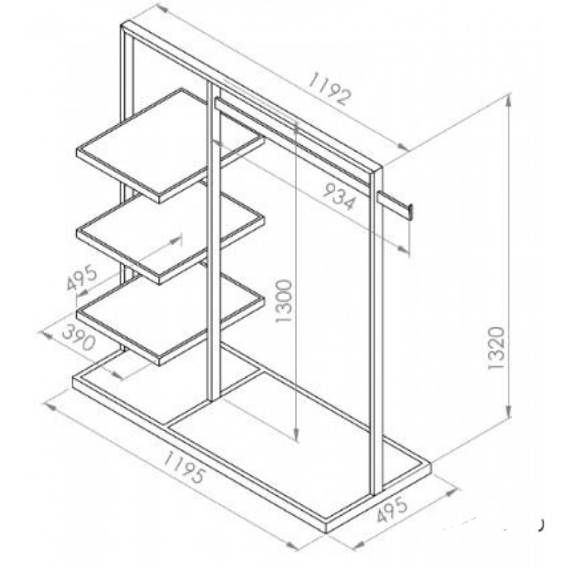 Стійка острівна, на 3 бокові полиці (вис.шир.довж.) 1320х500х1200мм
