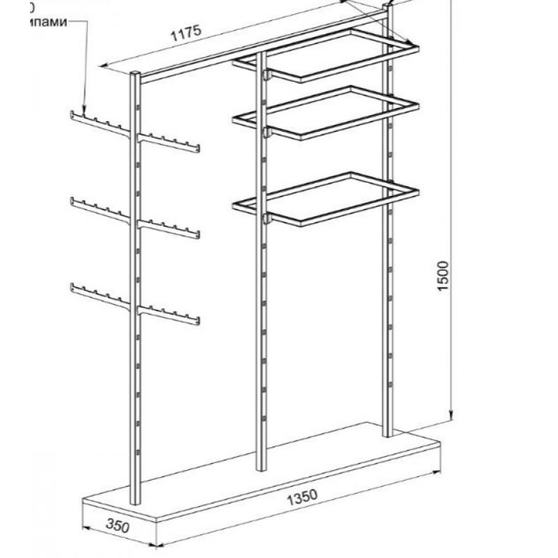 Стійка острівна для білизни, двосекційна (вис.шир.довж.) 1500х350х1350мм (артикул 30512/0)