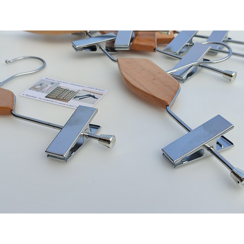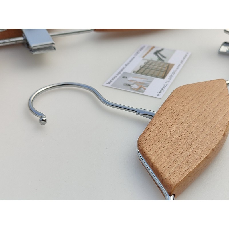 Вішалка-прищіпка хромована з декором 35 см.(натуральне дерево)